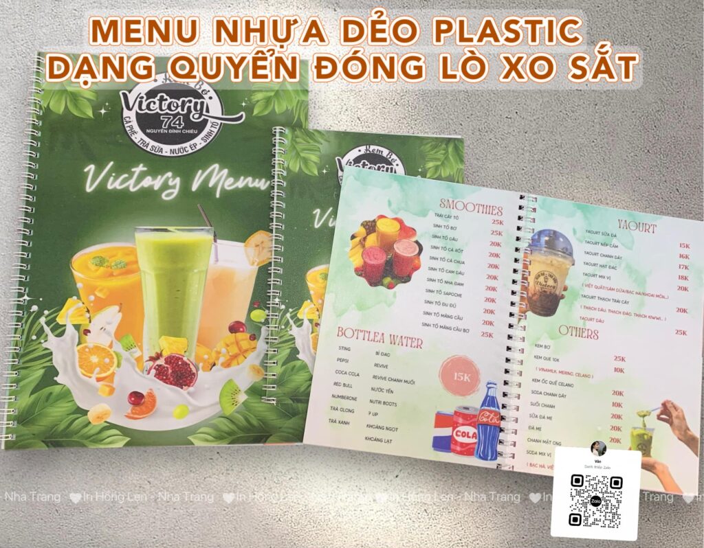 Menu nhựa dẻo plastic dạng quyển đóng lò xo sắt