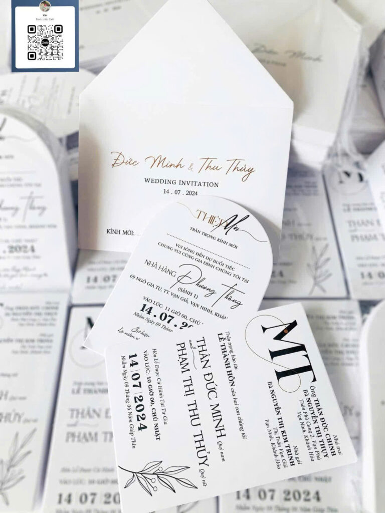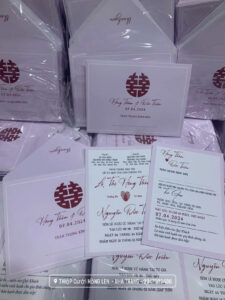 Bạn đang tìm kiếm thiệp cưới thiết kế theo yêu cầu để tạo dấu ấn riêng cho ngày trọng đại? Hãy để thiệp cưới không chỉ là lời mời, mà còn là món quà tinh tế mang phong cách của riêng bạn. Chất liệu giấy dày dặn – chất lượng – cao cấp: giấy kem dày, giấy ánh nhũ, giấy mỹ thuật… Công nghệ in hiện đại